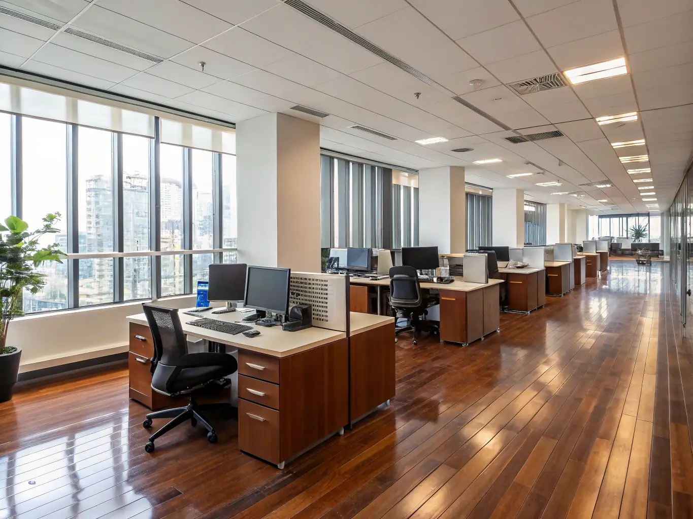 Complete renovation of a commercial office space, transforming it into a modern, open-plan workspace with eco-friendly finishes.